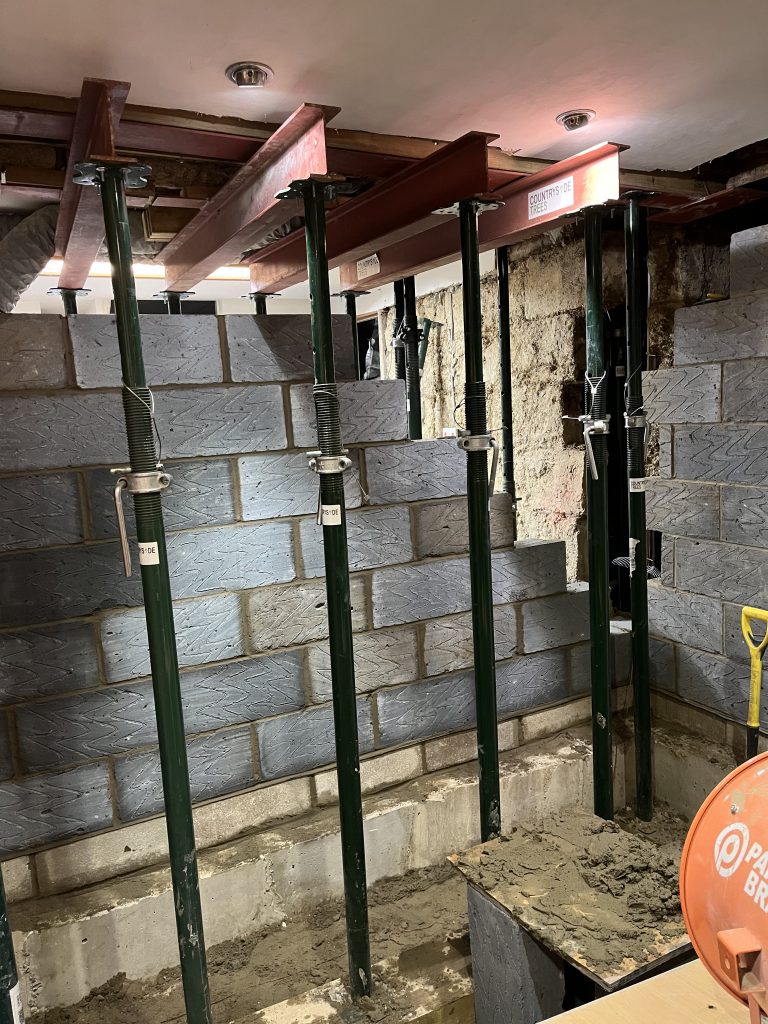 Building Control inspected the works at four key stages: steel installation, blockwork rebuild, floor installation prior to concrete pour and final completion, ensuring compliance throughout.
