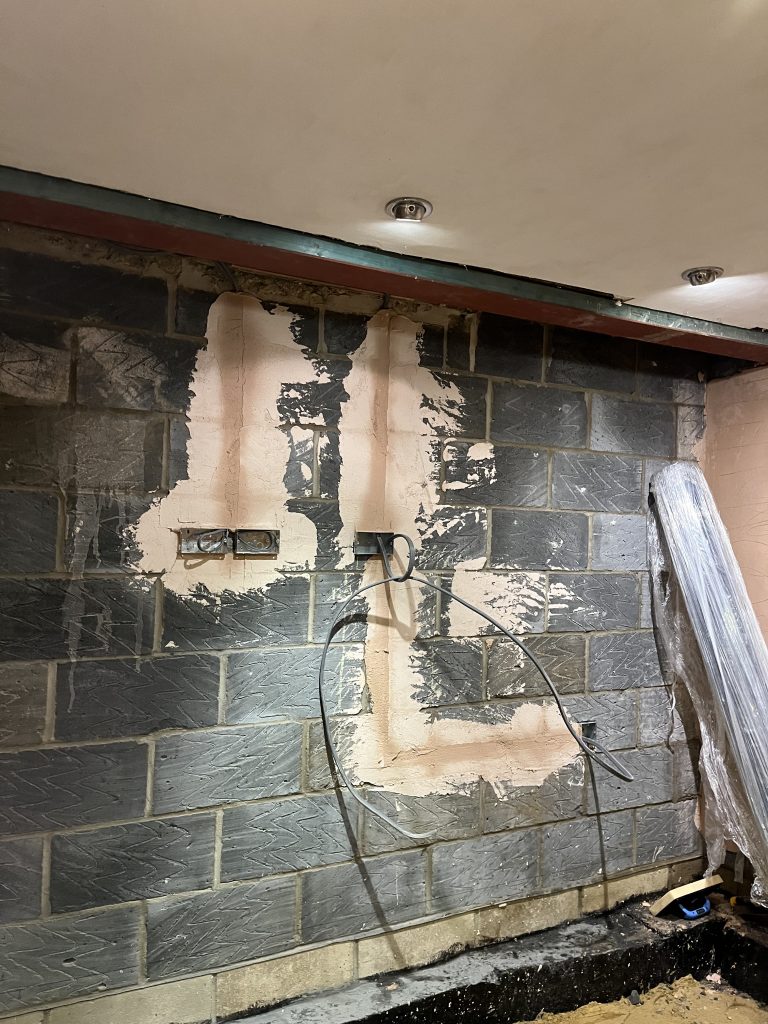 First-fix electrics were installed, cables traced, and the wall surface was finished with hard wall and then multi-finish plaster. The kitchen floor was reinstated to Building Control specification, and the area was prepared for final decoration. - Quality Assurance: